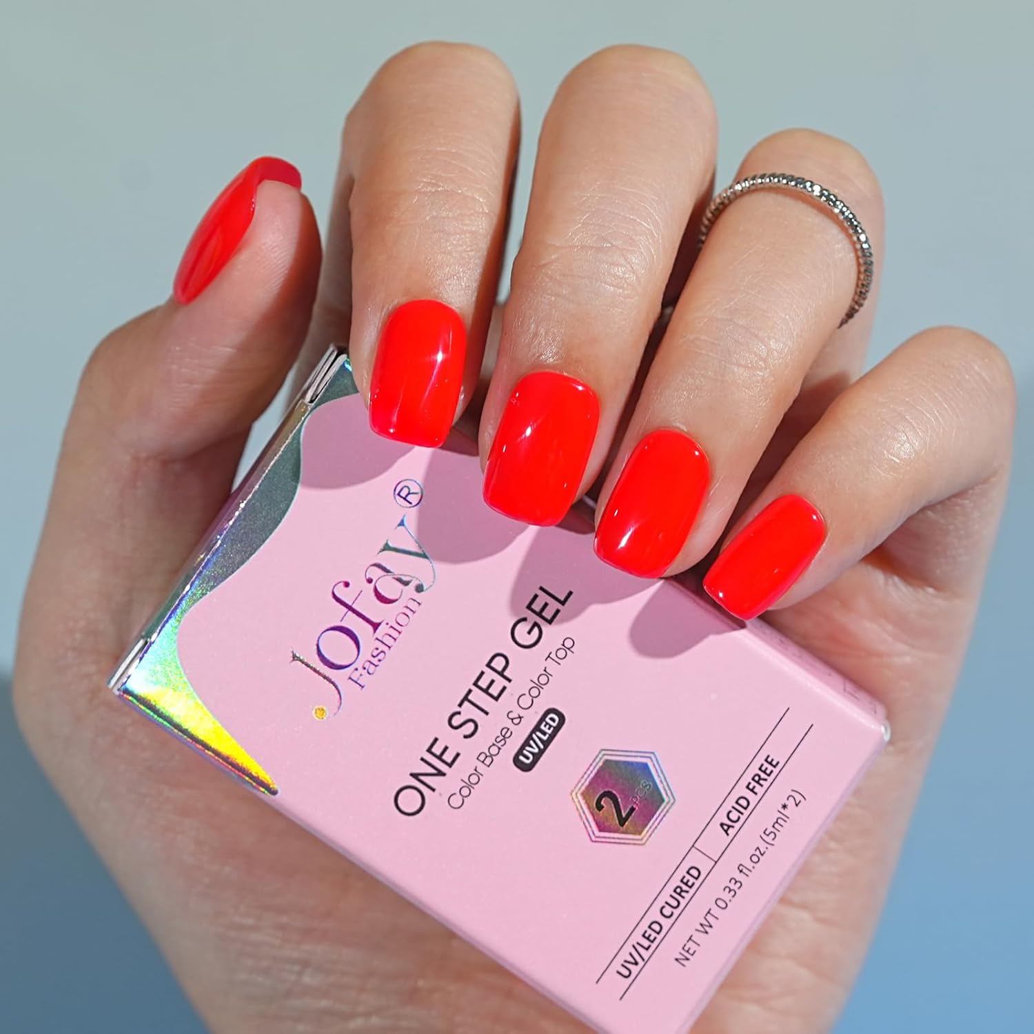 Jofay Fashion Red Gel Nail Polish 10ml - All-in-One Step Gel Polish Soak Off LED/U V Lamp DIY Salon Manicure at Home Long Lasting Glossy Finish Home Nail Salon Gift for Women & Girls (0.33 Fl Oz)