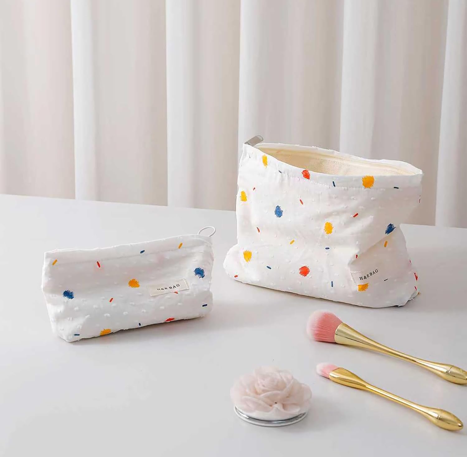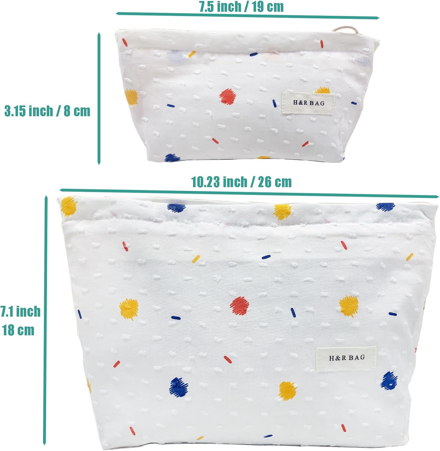 2 Pcs Makeup Bags, Large Cosmetic Bag Travel Toiletry Bag Organizer for Women, Embroidery Craft, Floral Makeup Bag Small Cosmetic Pouch Purse with Zipper, Gifts for Girls Teen (Colorful Dots)