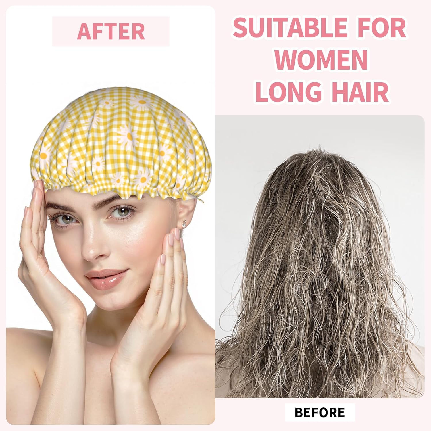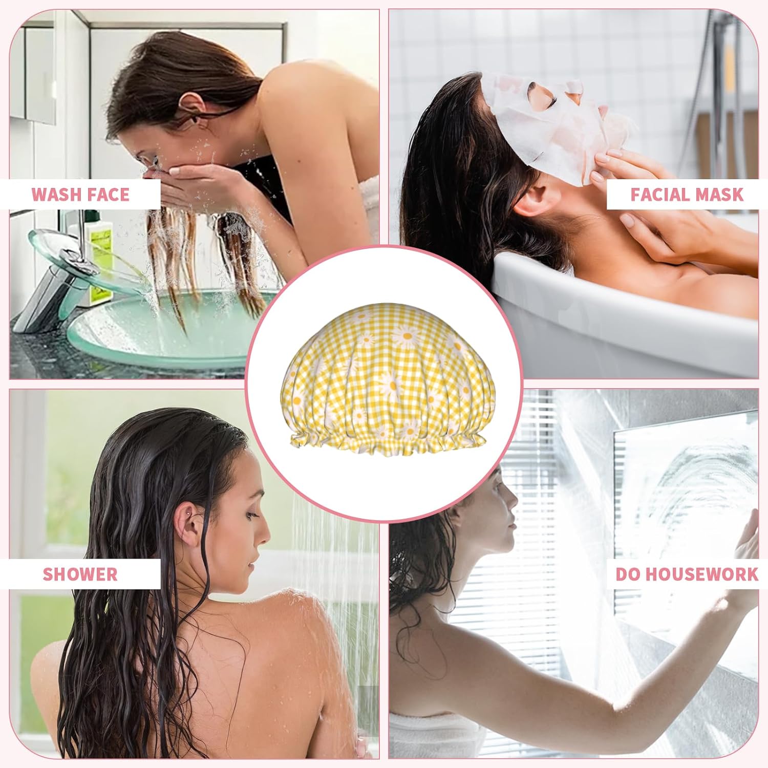 - Versatile Application: Our reusable daisy flower yellow checkered shower caps can be used for showering, cooking, household cleaning, and spa sessions, keeping your hair dry and protecting it from dust and cooking fumes. This daisy flower bath hair hat also fit for makeup, face washing, and applying facial mask, due to it suitable for all hair types-long, curly, voluminous or short, adding more convenience and beauty to your daily life.