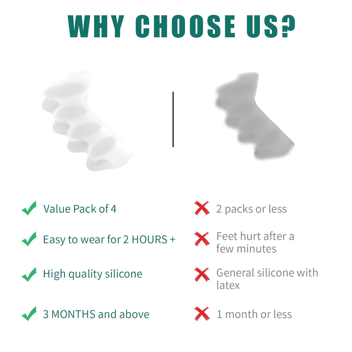 - 👣Effective Toe Separation: These toe correctors securely wrap around your toes, staying firmly in place. They provide optimal separation, prevent rubbing, relieve pressure, and help maintain proper toe alignment, promoting comfort and toe health.