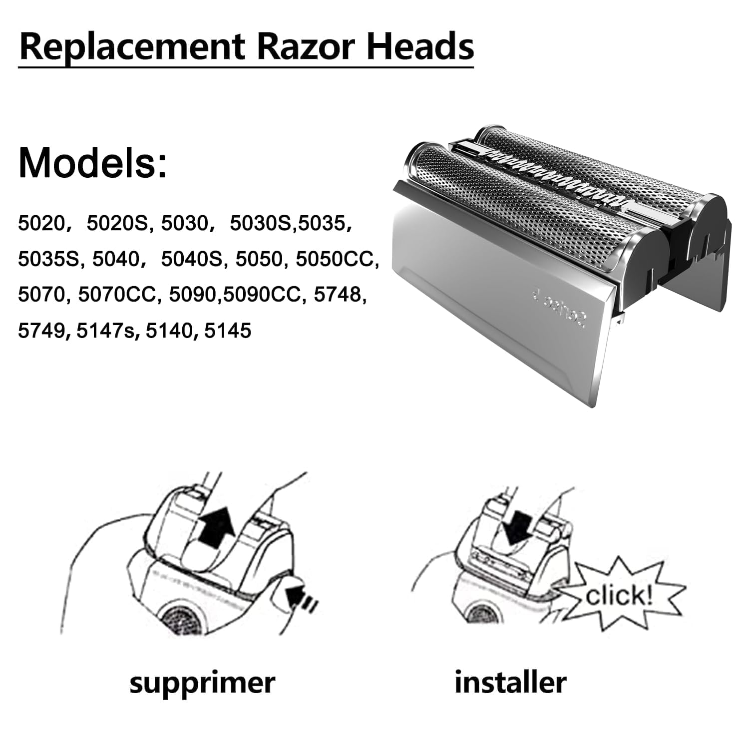 - BROAD COMPATIBILITY: 52S Replacement Head is compatible with Braun shaver series 5 : 5020, 5020S, 5030, 5030S, 5035,5035S, 5040, 5040S, 5050, 5050CC, 5070, 5070CC, 5090, 5090CC, 5748, 5749, 5147s, 5140, 5145.