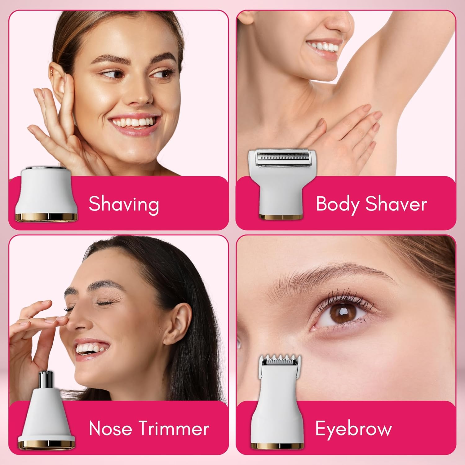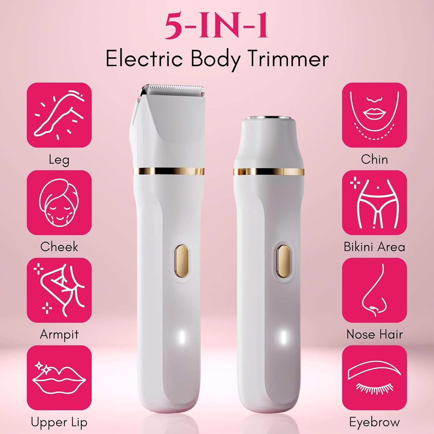 5-in-1 Bikini Trimmer Electric Razors with USB Cord, Excellent Facial Hair Elimination, Wet/Dry Body Shaver for Nose, Eyebrows, Beard, Leg, and Arm, IPX7 Waterproof (White)