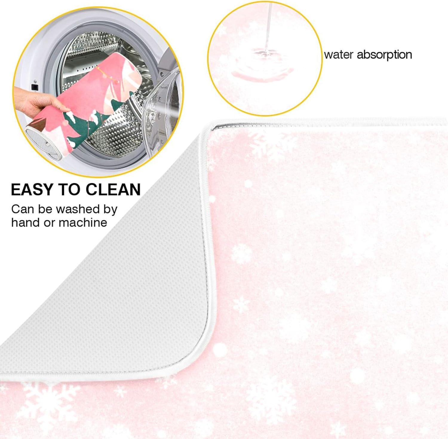 Christmas Tree Pink Dish Drying Mat for Kitchen Countertop 16x18 Winter Snowflake White Xmas Small Drying Mat Reusable Quick Dry Dish Sink Mats Easy Clean Decorative Essentials