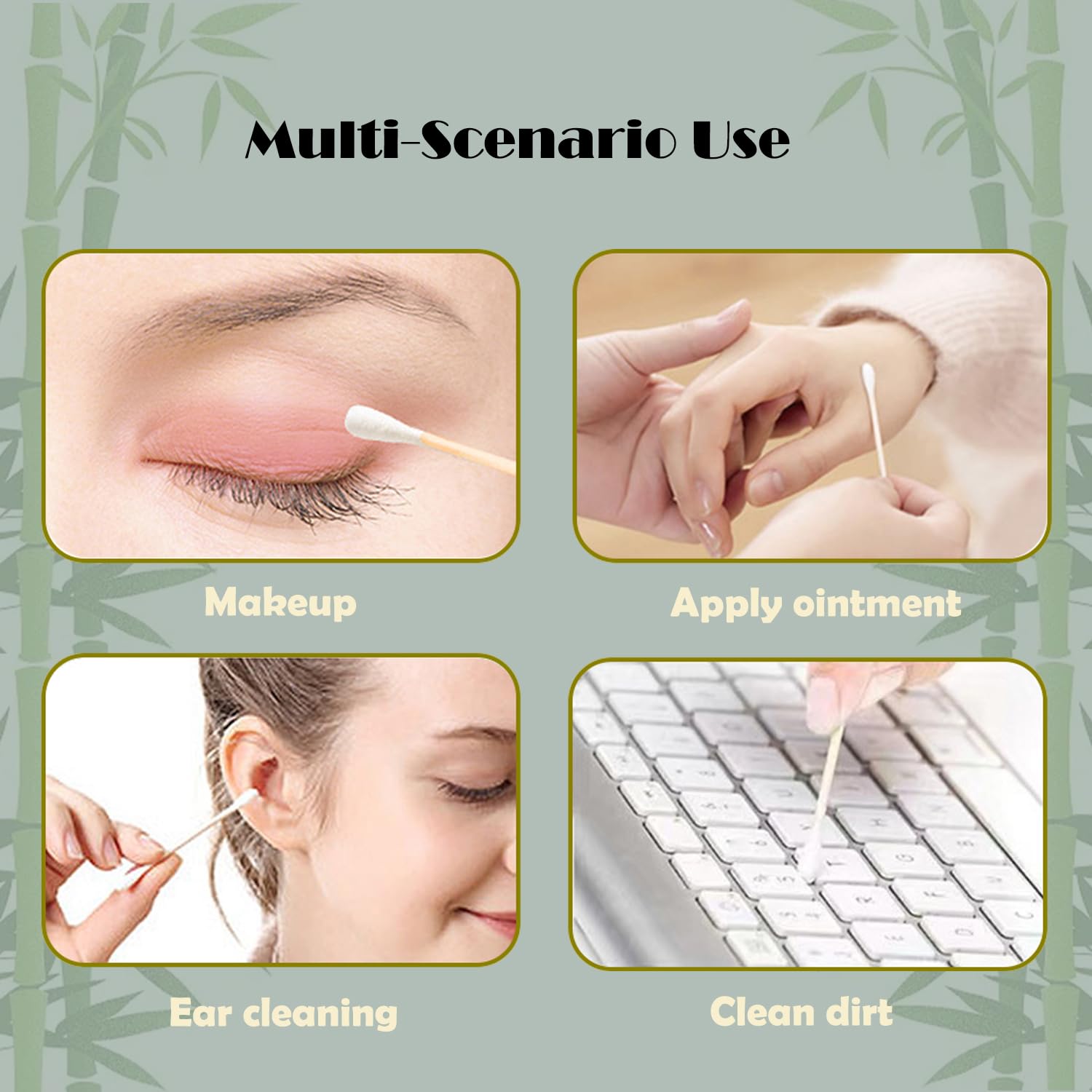 - Premium Cotton Tips - Each cotton swab is crafted with 100% pure natural cotton heads for superior softness and absorption, ensuring gentle cleaning for ears, makeup application, and delicate crafts.