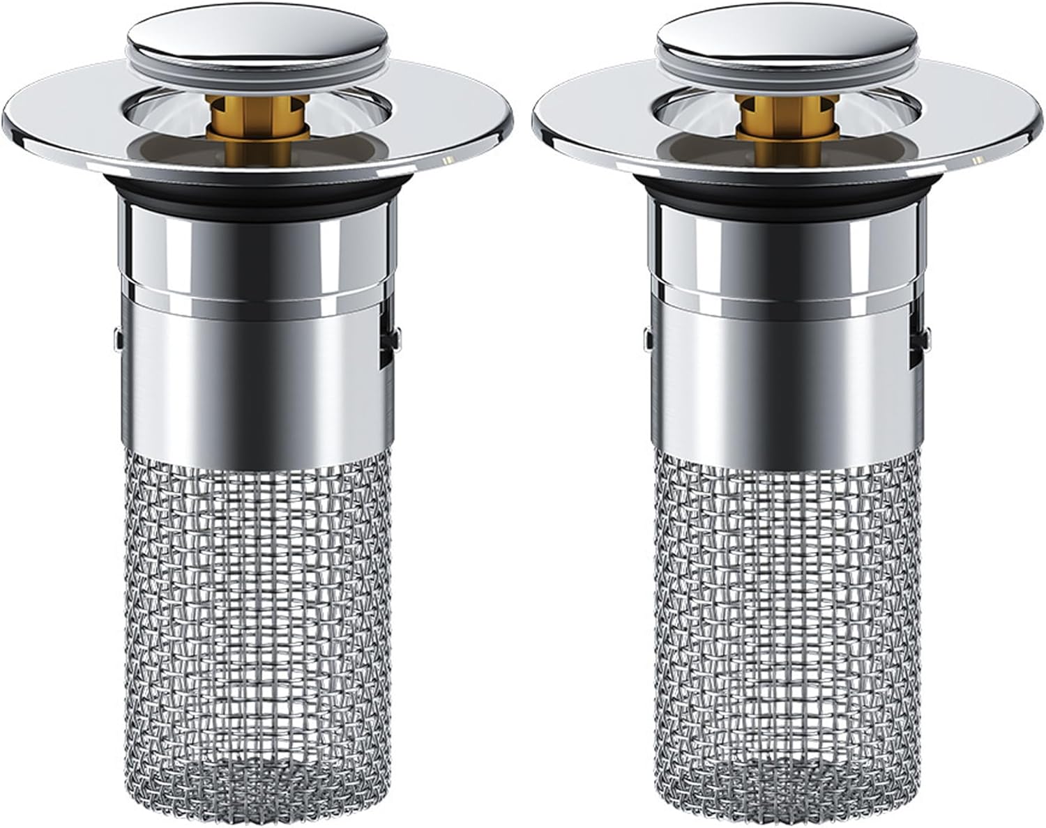 - 【Pop-up Extended Filter Design】The extended stainless steel filter basket efficiently captures hair and debris, preventing bathroom sink clogs. The easy-to-use pop-up mechanism allows you to control drainage effortlessly. The 2-in-1 functionality combines stopper and filter into one unit, making it easy to remove and clean, ensuring efficient drainage with minimal maintenance.