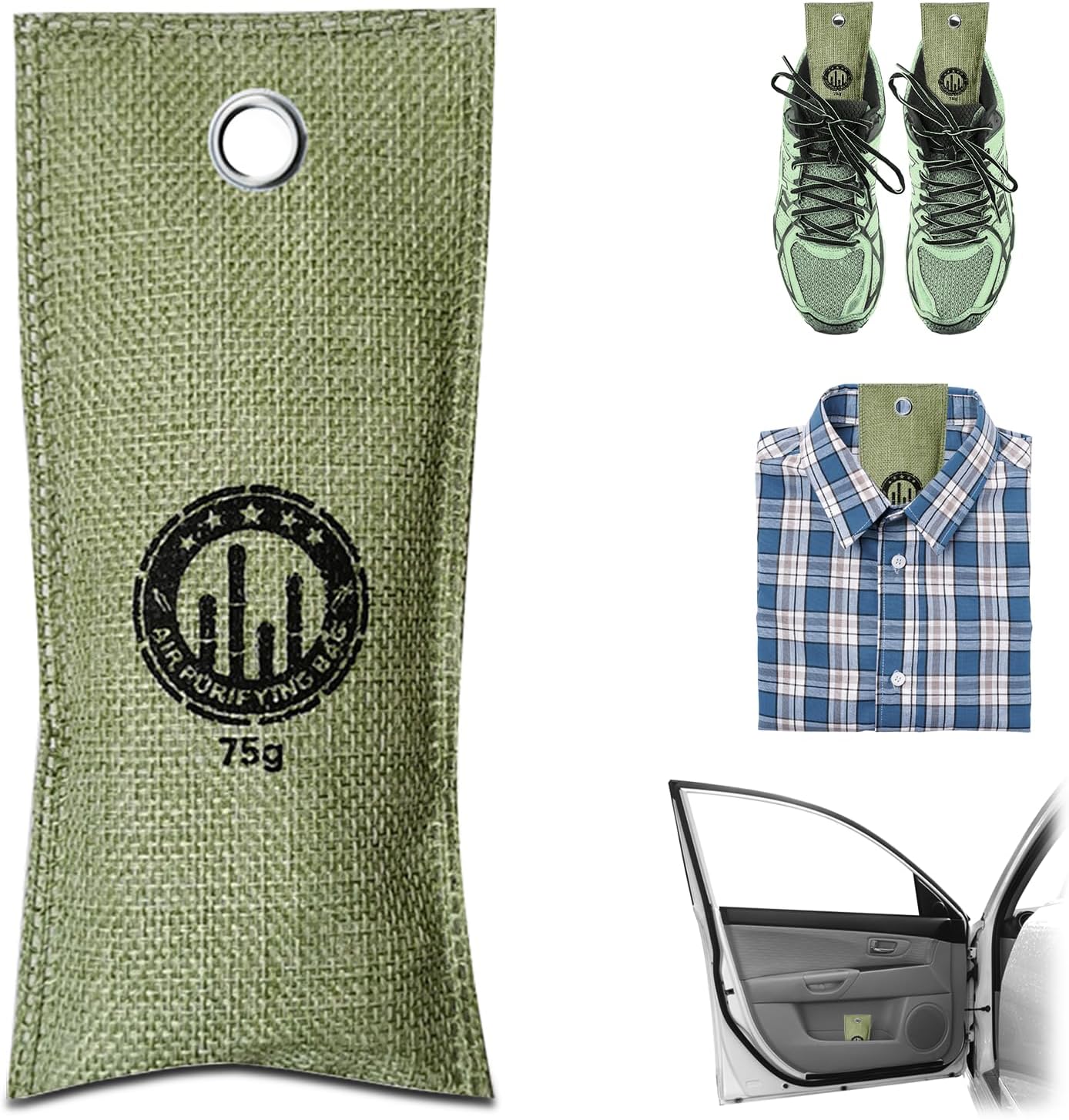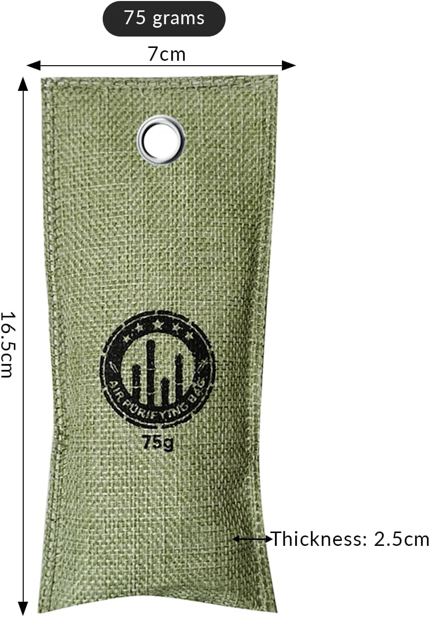 4 Pack charcoal odor absorber,Bamboo Charcoals Air Purifying Bag Charcoals Deodorizer Eliminator for Strong Odors in Car, Closet, Shoe, Basement (75G*4 Pack Green, Unscented)