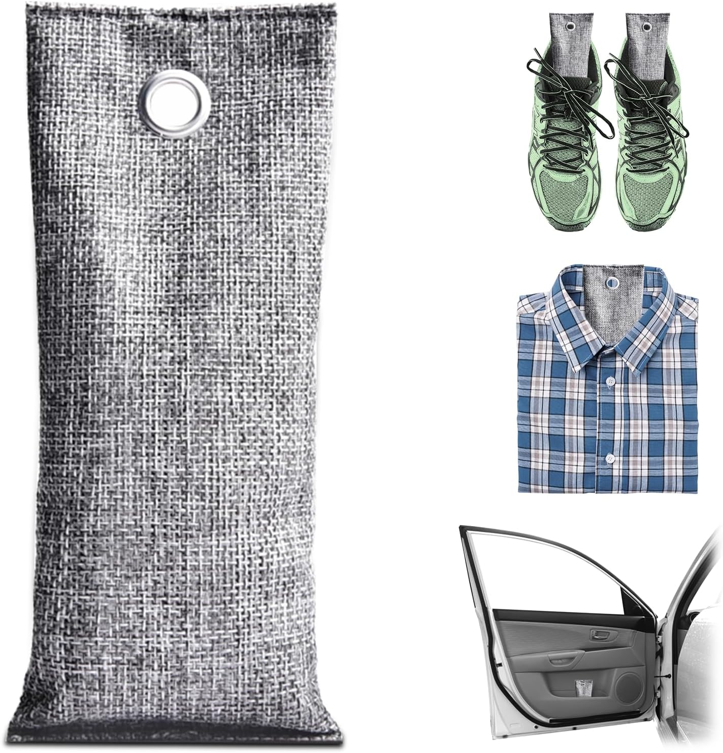- 4 CHARCOAL DEODORIZER BAGS . Our bamboo charcoal bag musty smell eliminators are the perfect size to place wherever you have a bad smell: closet, car, shoes, gym bag, basement, pet areas.
