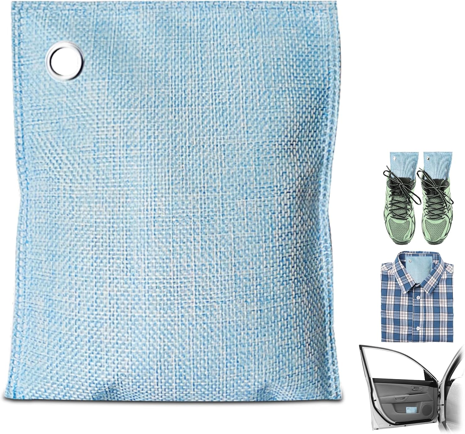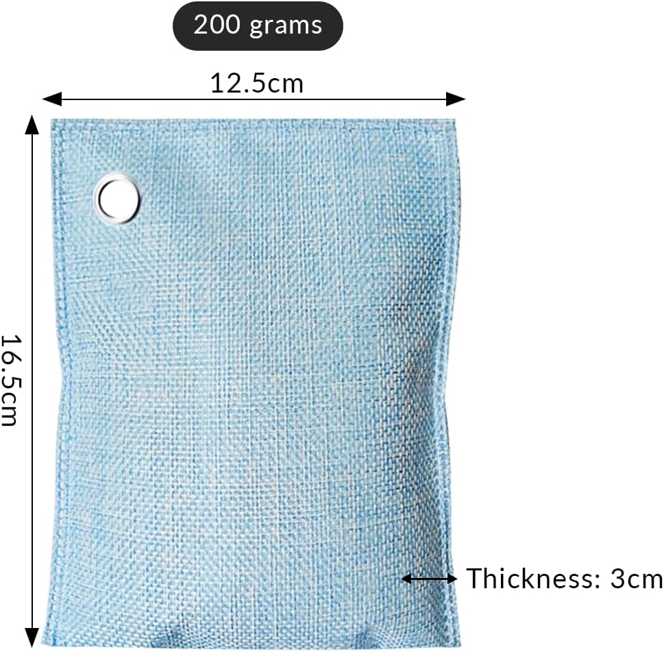 4 Pack charcoal odor absorber,Bamboo Charcoals Air Purifying Bag Charcoals Deodorizer Eliminator for Strong Odors in Car, Closet, Shoe, Basement (200G*4 Pack Light Blue, Unscented)