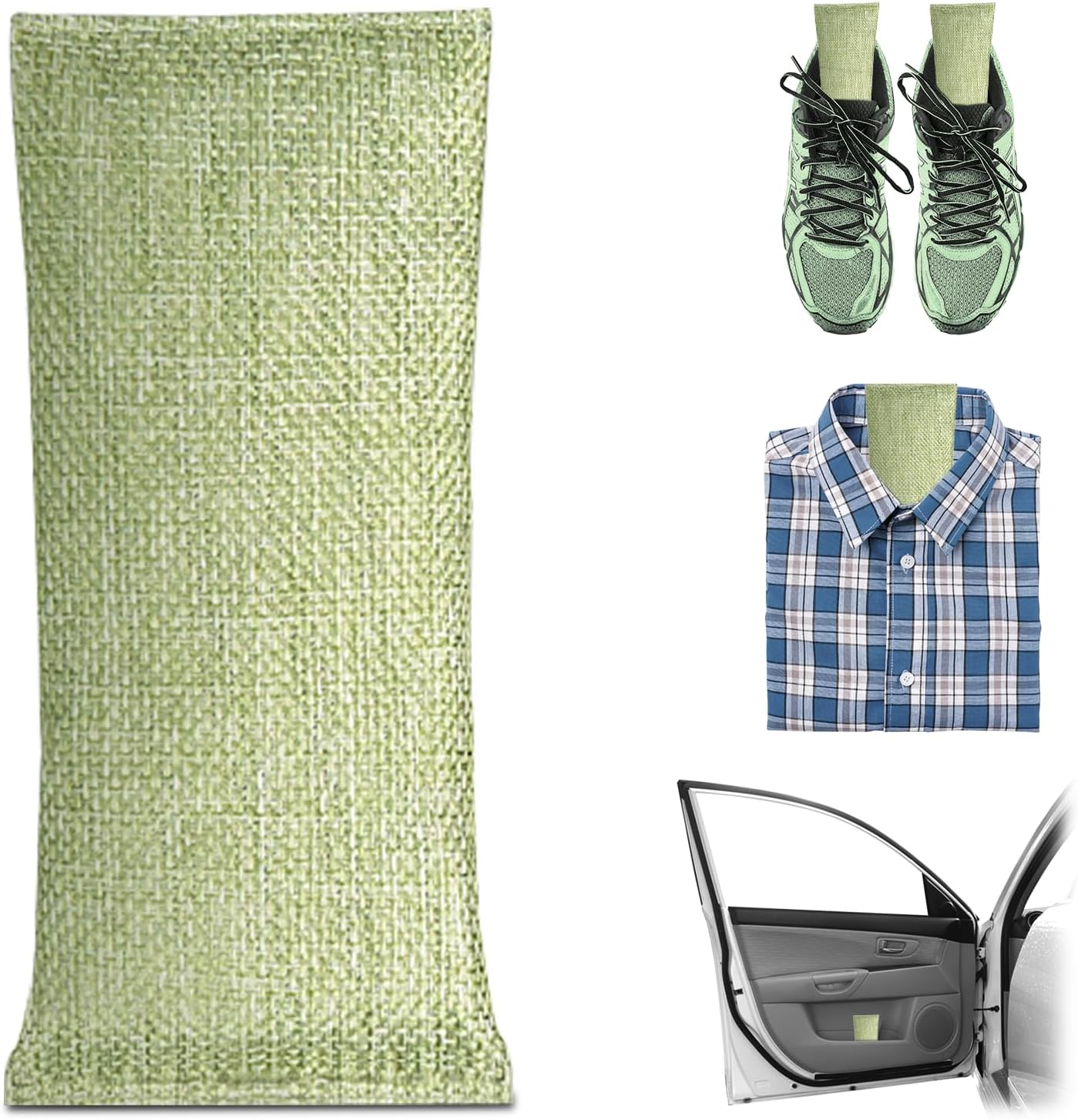 4 Pack charcoal odor absorber,Bamboo Charcoals Air Purifying Bag Charcoals Deodorizer Eliminator for Strong Odors in Car, Closet, Shoe, Basement (75G*4 Pack Light Green, Unscented)