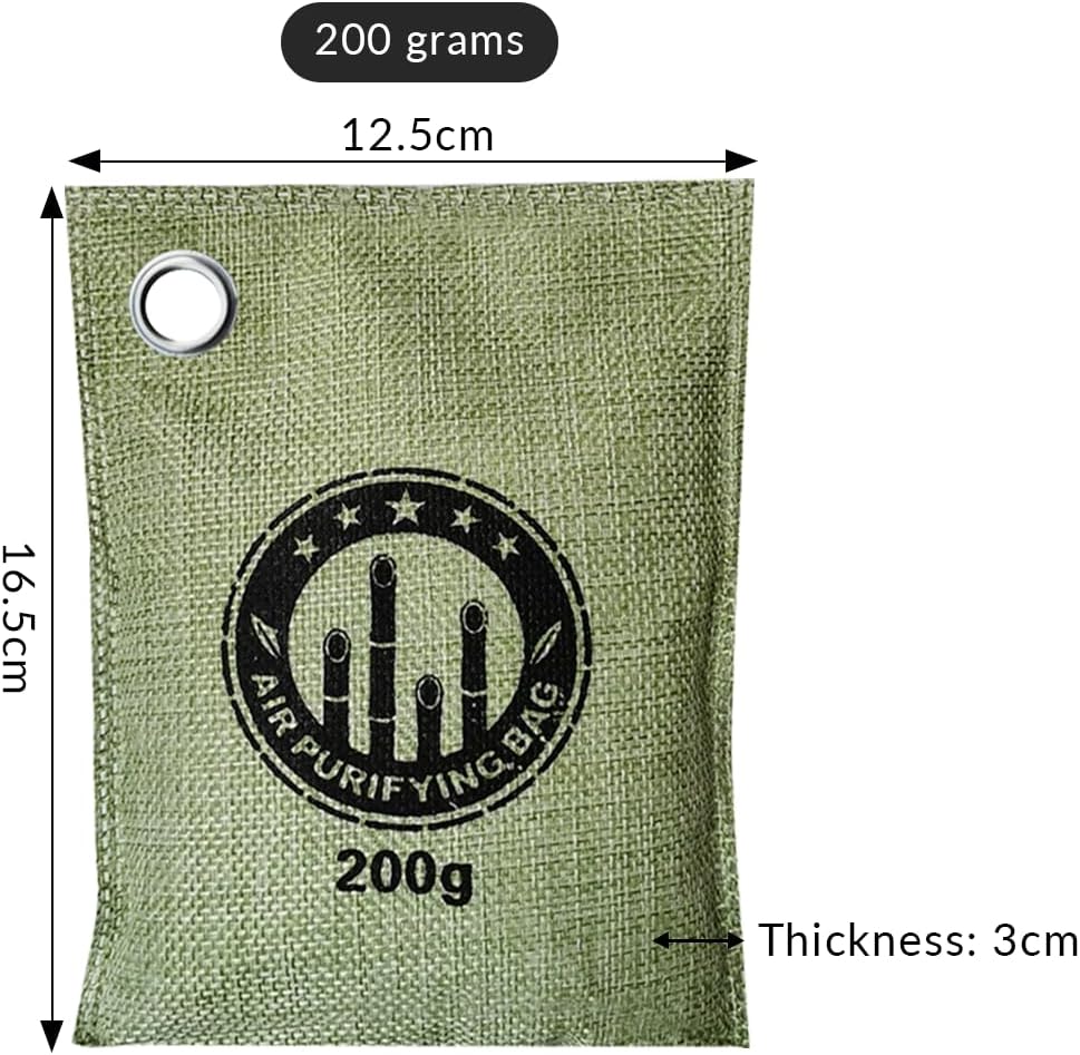 4 Pack charcoal odor absorber,Bamboo Charcoals Air Purifying Bag Charcoals Deodorizer Eliminator for Strong Odors in Car, Closet, Shoe, Basement (200G*4 Pack Green, Unscented)