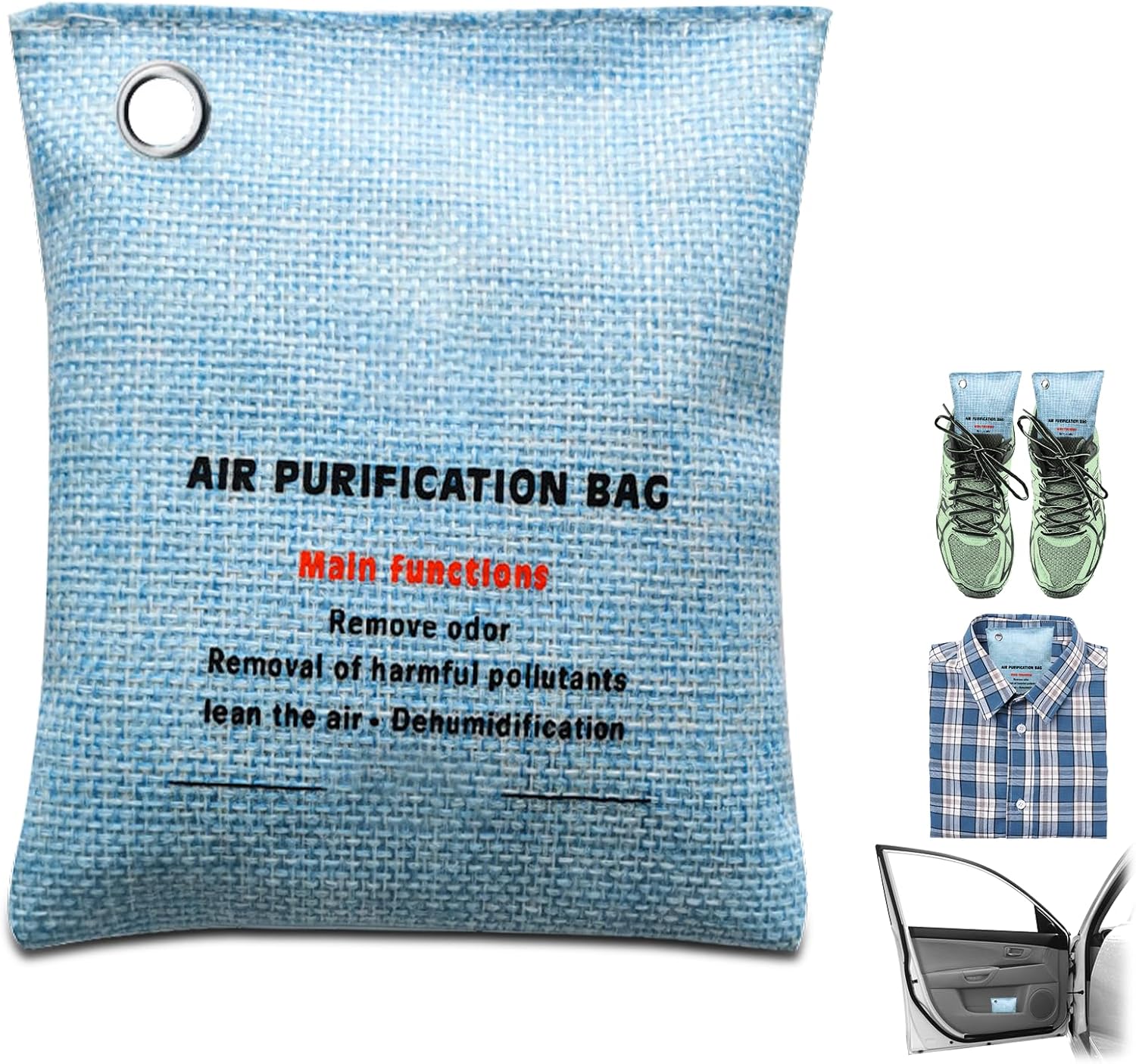 - 4 CHARCOAL DEODORIZER BAGS . Our bamboo charcoal bag musty smell eliminators are the perfect size to place wherever you have a bad smell: closet, car, shoes, gym bag, basement, pet areas.