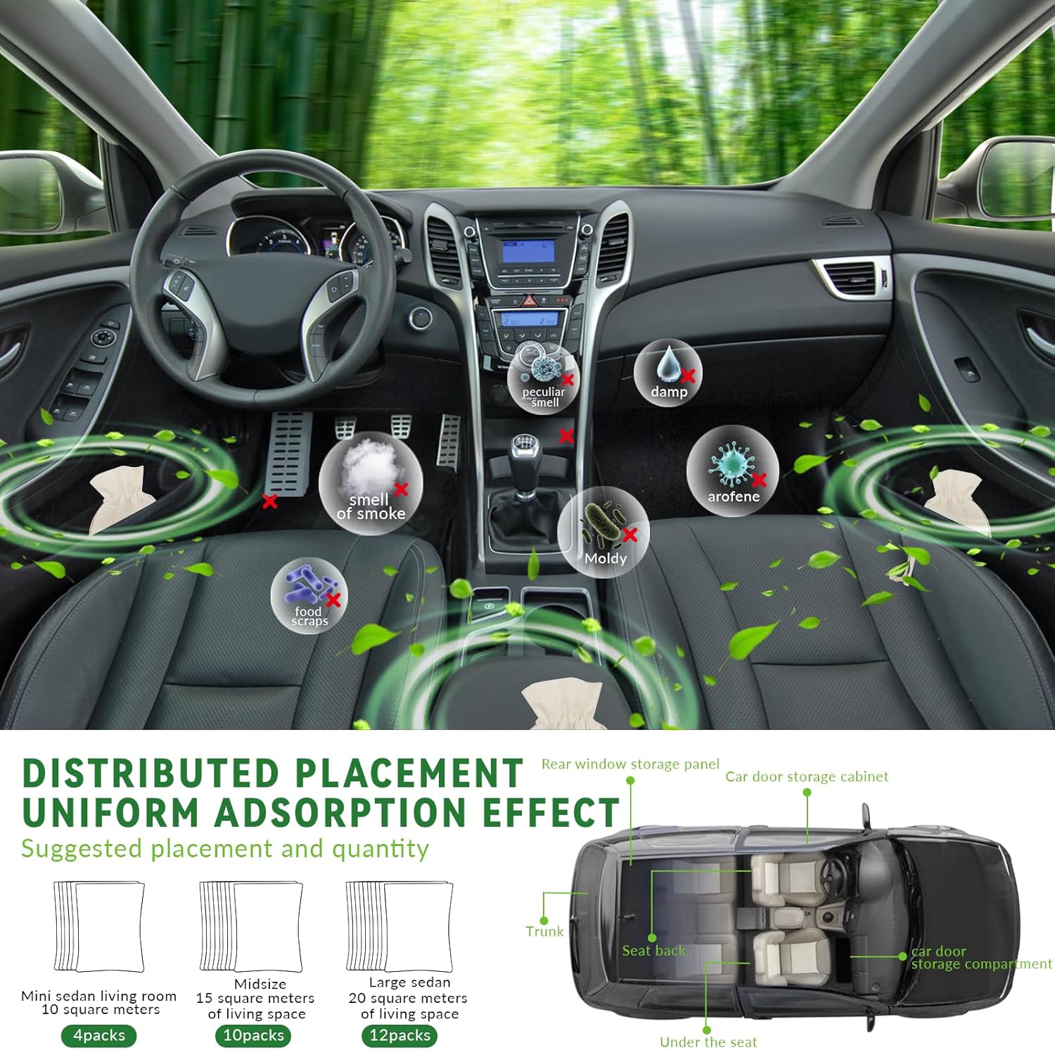 - ODOR ELIMINATOR FOR CAR. Pop a couple of our charcoal odor absorbers for car in your vehicle. After a few days these car deodorizers will have your ride smelling sweet! Use more car odor removers for bigger cars.