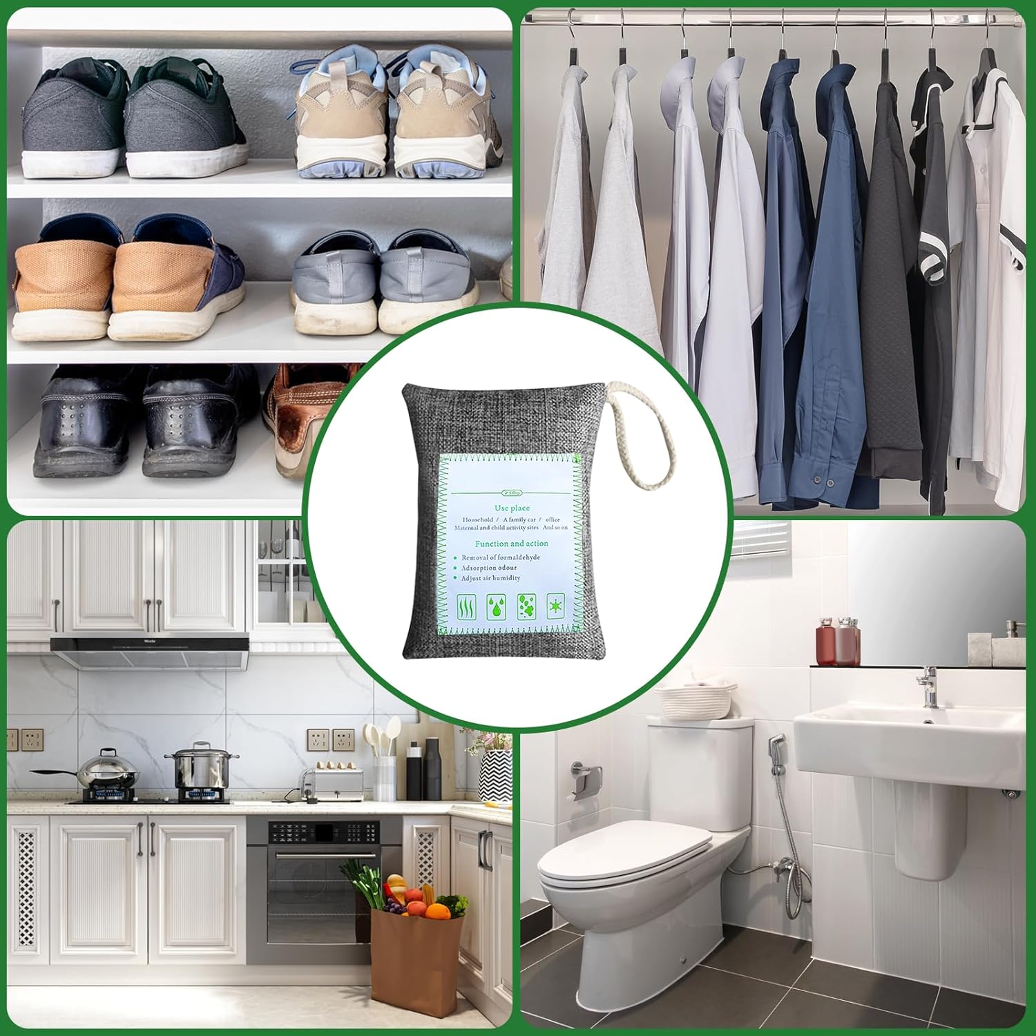 - NATURAL NON-TOXIC ODOR ELIMINATION. Our charcoal odor absorbers for home contain highly porous activated bamboo charcoal which binds to and removes bad smells.